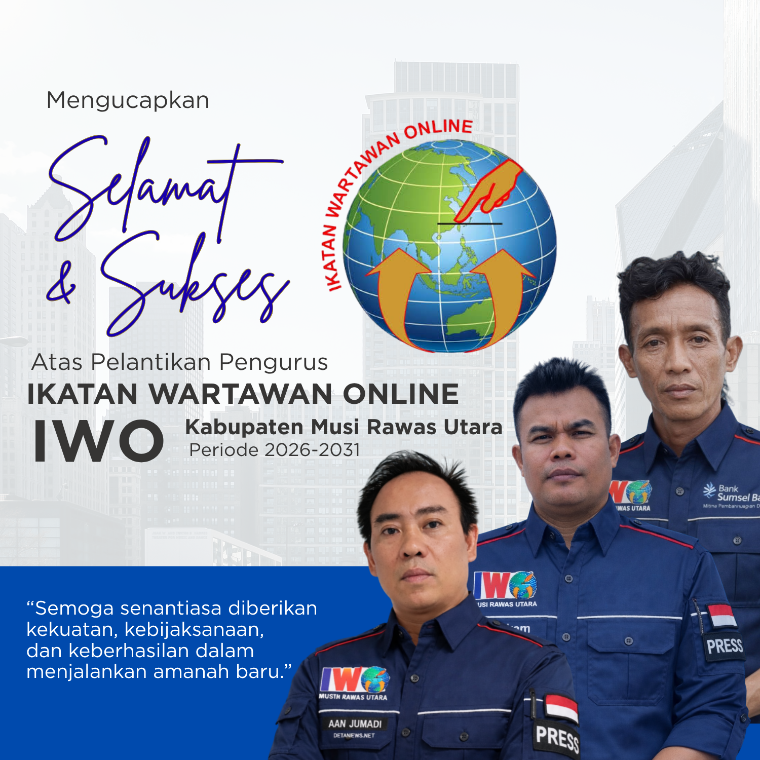 Musi Banyuasin, DetakNews – resmi dipercaya memimpin (IWO) Kabupaten Musi Rawas Utara untuk masa bakti 2026–2031. Prosesi pelantikan dilakukan langsung