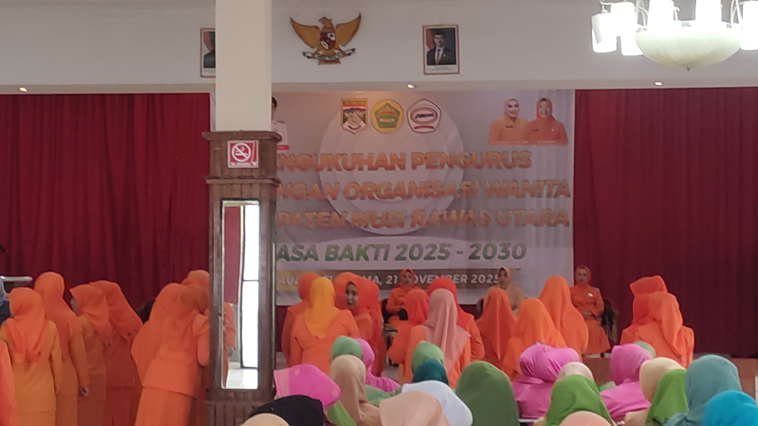 MURATARA | DETAKNEWS — Pemerintah Kabupaten Musi Rawas Utara mengukuhkan Pengurus Gabungan Organisasi Wanita (GOW) Kabupaten Musi Rawas Utara periode 2025–2030 dalam acara resmi yang berlangsung di Aula Setda, Jumat (21/11/2025). Kegiatan berlangsung khidmat dan dihadiri Bupati, Wakil Bupati, Forkopimda, pimpinan organisasi wanita, serta sejumlah tamu undangan.