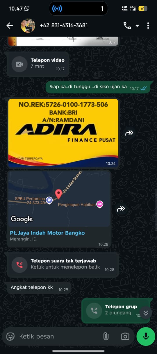 Belum berhenti sampai di situ, di tengah proses AA kembali dihubungi dan diminta mentransfer uang tambahan sebesar Rp1.500.000 ke rekening atas nama Ramdani, yang disebut-sebut sebagai pimpinan Adira Cabang Bangko Merangin.